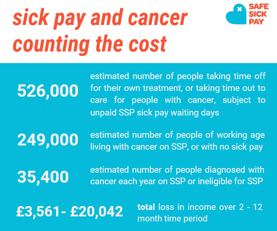 The Centre for Research in Social Policy, Loughborough University calculated that the income loss for people taking time off for cancer treatment in SSP could rise to tens of thousands of pounds in the worst case scenario.