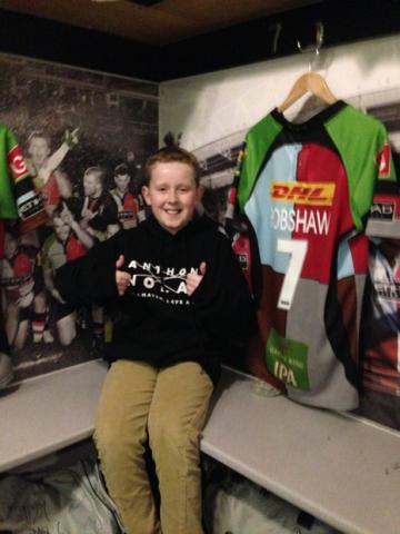 'The game was brilliant and Alex's day was made when he got to meet some of the players including Paul Sackey, and he had a look around the changing rooms and saw the inner workings of the team. He even got to wave a flag as the Harlequins came out onto the field.’