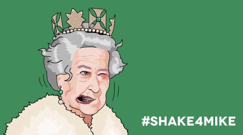 Celebrities including Coldplay, Stephen Fry, Gary Lineker and Stevie Johnson from Made in Chelsea have tweeted their support for #Shake4Mike, and some have even shared their own shaky-faces, including Sally from Coronation Street, Homeland’s David Harewood, and The One Show’s Joe Crowley and Lucy Siegle. Even popular social media artist Jim’ll Paint It has supported the appeal by creating a shakyface picture of the Queen.