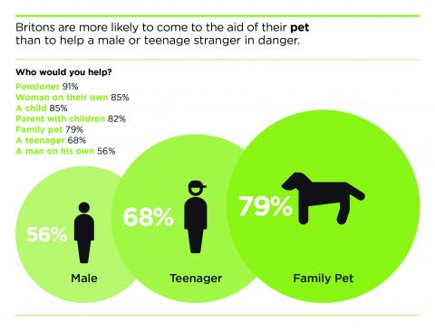 Britons are more likely to come to the aid of their pet than to help a male or teenage stranger in danger, our new research has revealed.