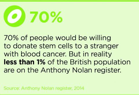 Despite the survey showing 70% of people would be willing to donate stem cells to a stranger with blood cancer, in reality less than one per cent (0.8%) of the British population are on the Anthony Nolan register.