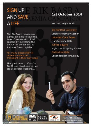 Rik's life was saved after he received a bone marrow transplant from an anonymous donor through Anthony Nolan in 2011.Rikand his family have campaigned tirelessly ever since to recruit more donors to the register and went on to set up the The Rik Basra Leukaemia Campaign, which works closely with De Montfort University students.