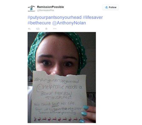 Selfless Emily is now using her 100 day milestone on the 7th May to call for everyone over 16 to join the Anthony Nolan register.