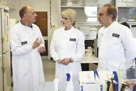 Joanna Lumley visiting the Anthony Nolan Labs and Research facilities