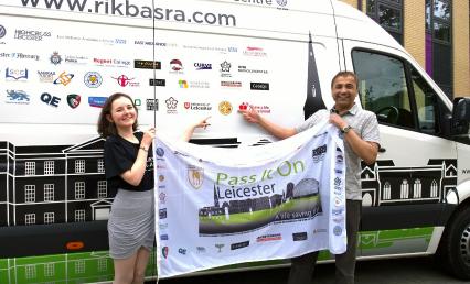 Stem cell donor Jack Grieves, who signed up at one of the Basra’s events at Regent College in 2013, took the flag from Regent College to De Montfort University and passed it on to an Anthony Nolan volunteer courier, recreating the journey that stem cells make. Anthony Nolan couriers collect stem cells from donors, before finally delivering them to patients, wherever they are in the world. The courier carried the ‘Pass it On’ flag and presented it to transplant recipient Rik Basra, who took it to its final destination at the Leicester Royal Infirmary, a fitting place for the flag to be kept as a symbol of hope for transplant patients.