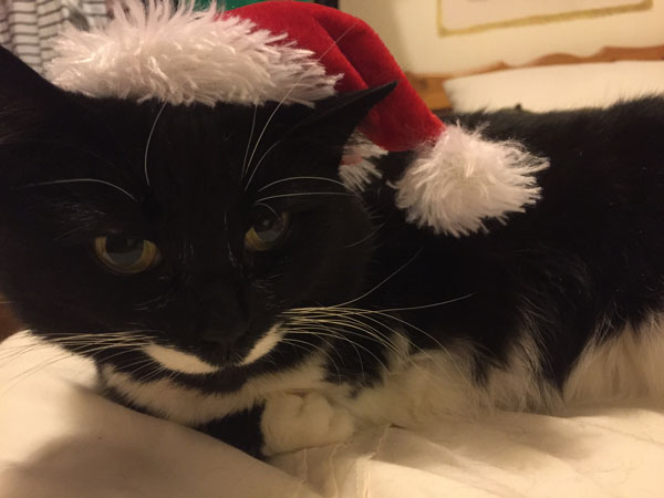 Straight away, I sent him a photo of myself, and a festive pic of my three-legged cat, Tripod.
