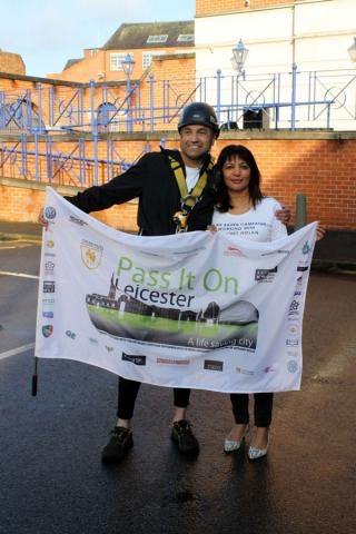 #PassItOnLeicester kicks off with @Help4Rik_RT zip wiring with the flag! @AnthonyNolan pic.twitter.com/7VKIfLcQ4d