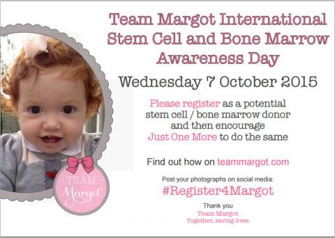 Team Margot Foundation was established as a global campaigner dedicated to raising awareness about the need for more potential bone marrow / stem cell donors. The announcement of an International Stem Cell and Bone Marrow Awareness day comes on the second anniversary of toddler Margot Martini being diagnosed with blood cancer.