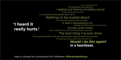 We’re working hard to change those attitudes – which is why we launched our #DonatingIsntScary campaign this October, featuring stories from both stem cell and bone marrow donors, and a short animated film created by Bournemouth University students.