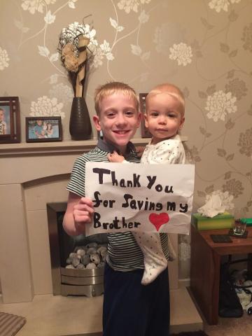 11 year-old Harry has thanked a total stranger for giving his little brother a second chance of life, by offering to donate their stem cells later this month.