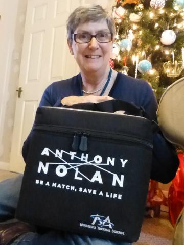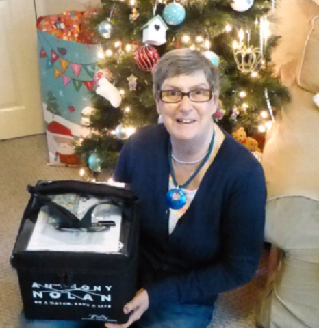 A self-confessed ‘Christmas person’, Sue is a volunteer stem cell courier for the blood cancer charity Anthony Nolan, which runs the UK’s bone marrow and stem cell register.