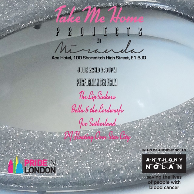 Every year I work with an arts collaborative called Take Me Home Projects, creating exhibitions to raise money for a chosen charity. So for this year’s Pride in London show, we shall be holding a night of performances in Miranda, Ace Hotel’s basement bar in Shoreditch.