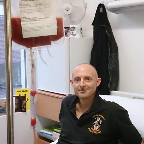 Finally, the big day arrived. My wife arrived early for a guitar sing-along, and then shortly after 3pm I started the 45-minute infusion of donor stem cells. I remember a real mixture of emotions as the cells were dripped in through my Hickman Line: nervousness, excitement, hope and, of course, gratitude for the sacrifice made by a complete stranger. The date was 3 December, and I still celebrate the date as my ‘other birthday’.