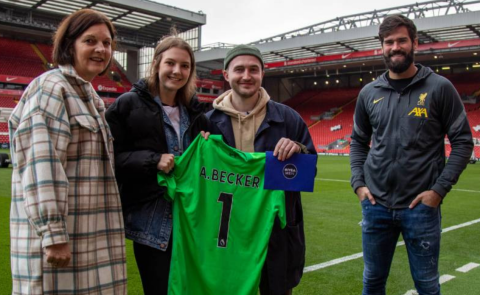 With the help of NIVEA MEN, Liverpool FC organised a big surprise for Ethan. He arrived at Anfield to meet Libbie and her family and thought he was heading on a tour of the stadium but had no idea he was also going to meet his hero, Liverpool goalkeeper Alisson Becker.