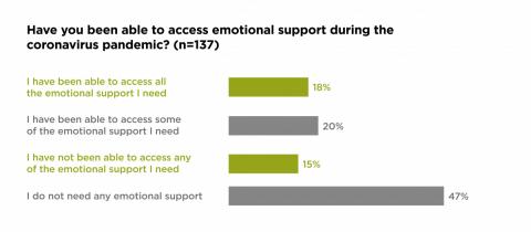 Of those who felt they needed emotional support, 53%, only 33% were able to access all the emotional support they needed. This was supported by some of the free text comments which suggested that psychological support previously offered had in some cases been discontinued due to COVID-19 related disruption.