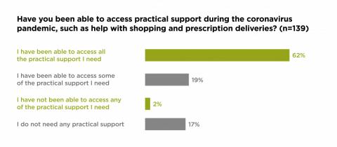 While 62% of respondents reported that they had been able to access all of the practical support they need, such as help with shopping and prescription deliveries, 21% of patients have only had these needs partially met, or not at all.
